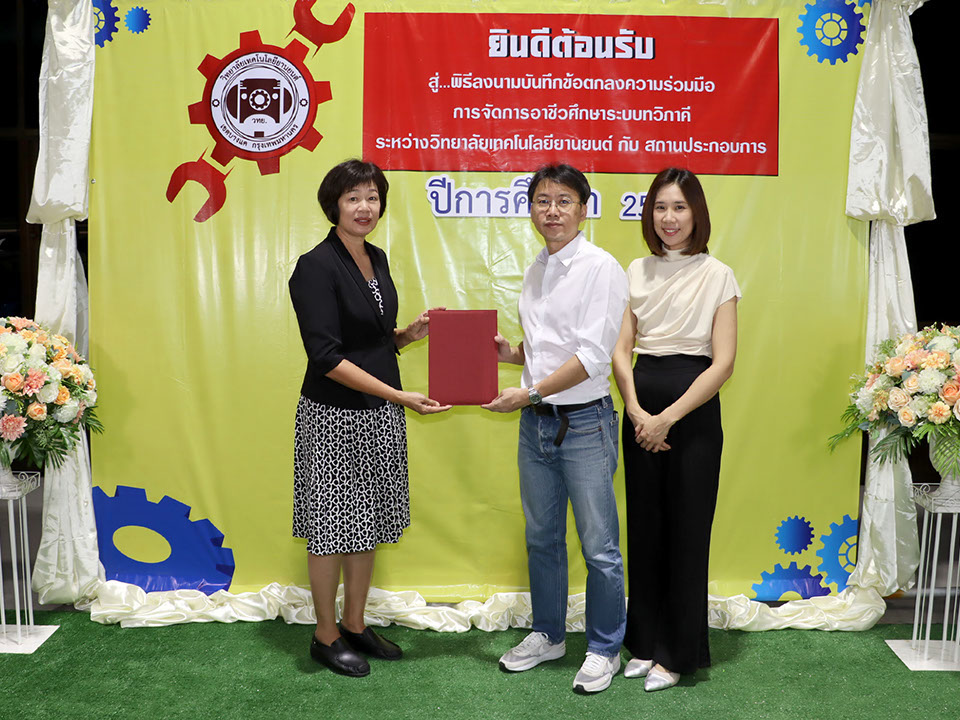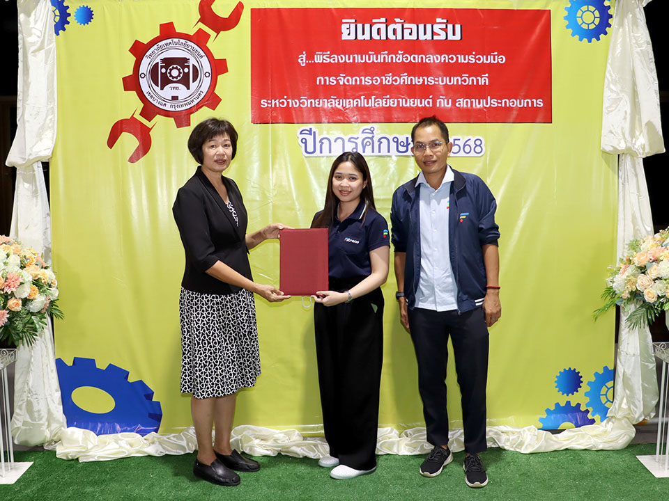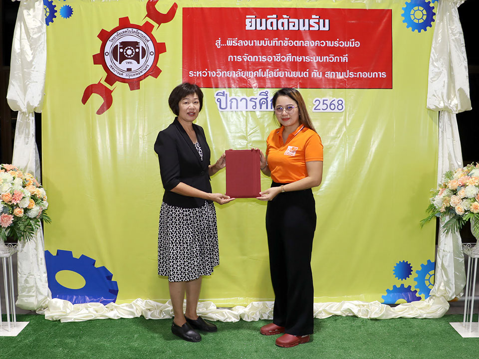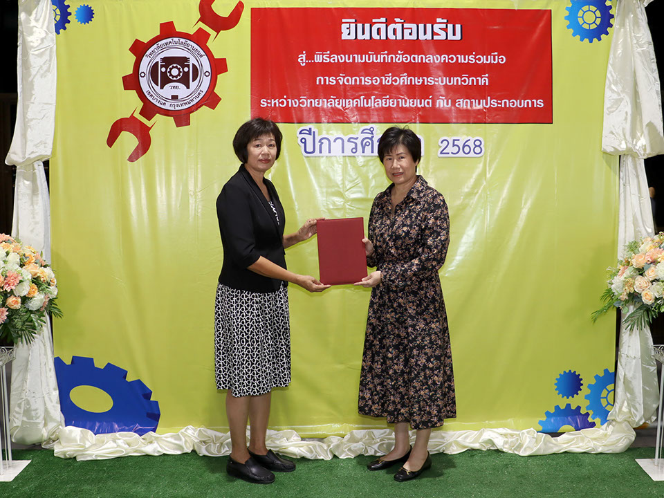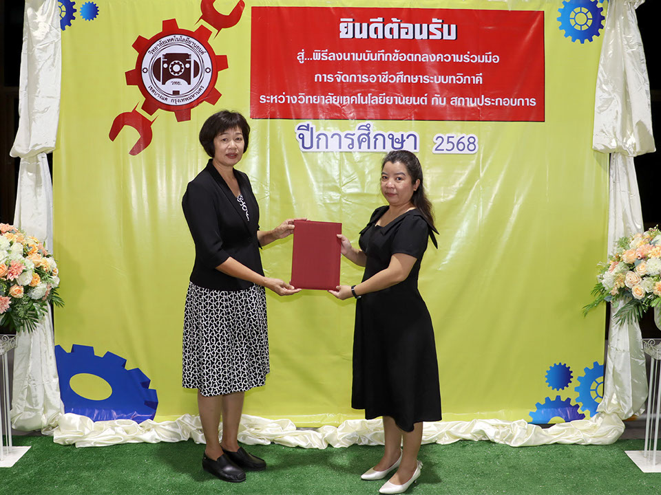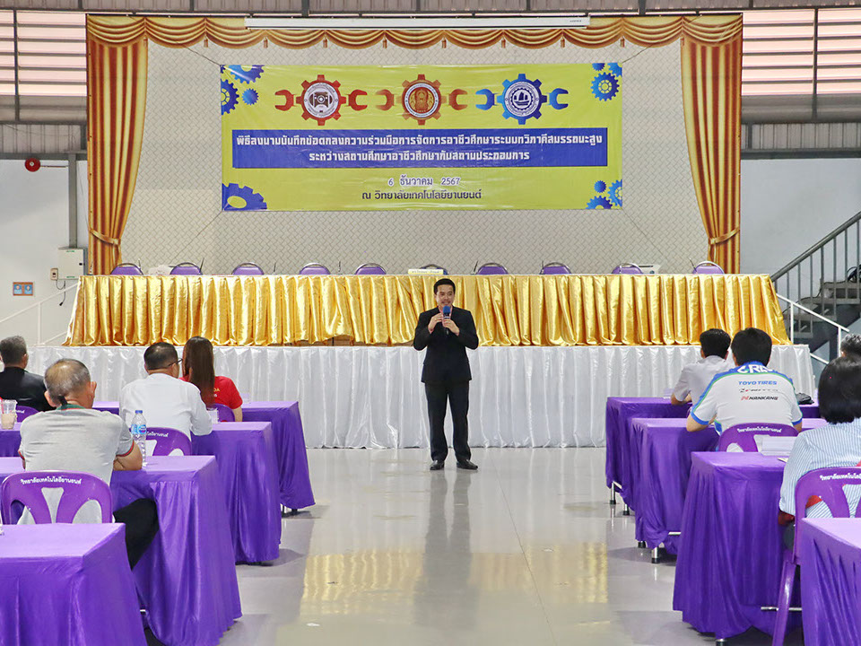 ผู้บริหาร / ตัวแทน / ผู้จัดการ สถานประกอบการ ผู้อำนวย ดร.โรจนะ ภิรมย์ ลงนามบันทึกข้อตกลงความร่วมมือการจัดการอาชีวศึกษาระบบทวิภาคี เมื่อวันที่ 6 ธันวาคม 2567
