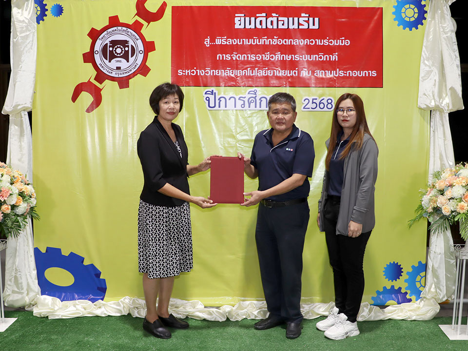 ผู้บริหาร / ตัวแทน / ผู้จัดการ สถานประกอบการ ผู้อำนวย ดร.โรจนะ ภิรมย์ ลงนามบันทึกข้อตกลงความร่วมมือการจัดการอาชีวศึกษาระบบทวิภาคี เมื่อวันที่ 6 ธันวาคม 2567