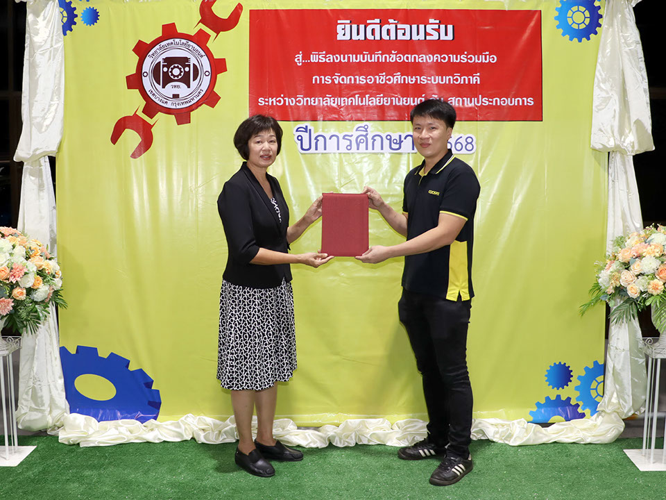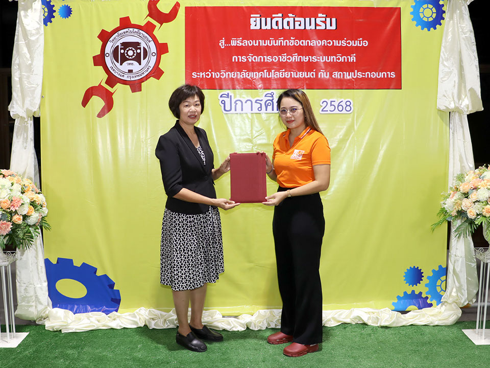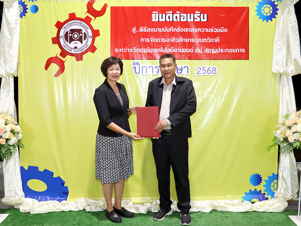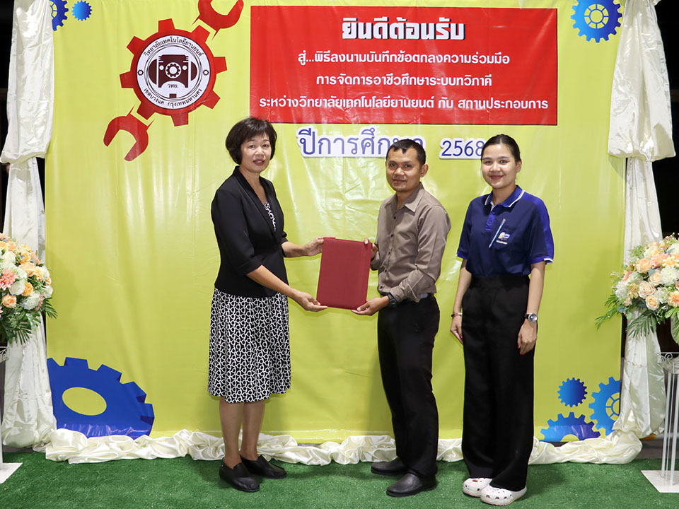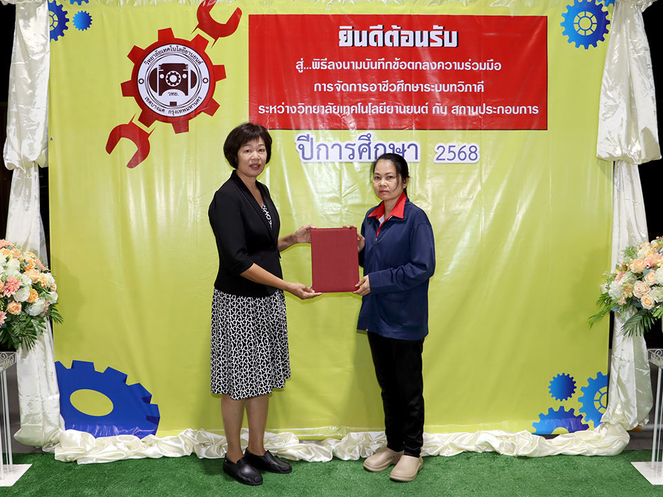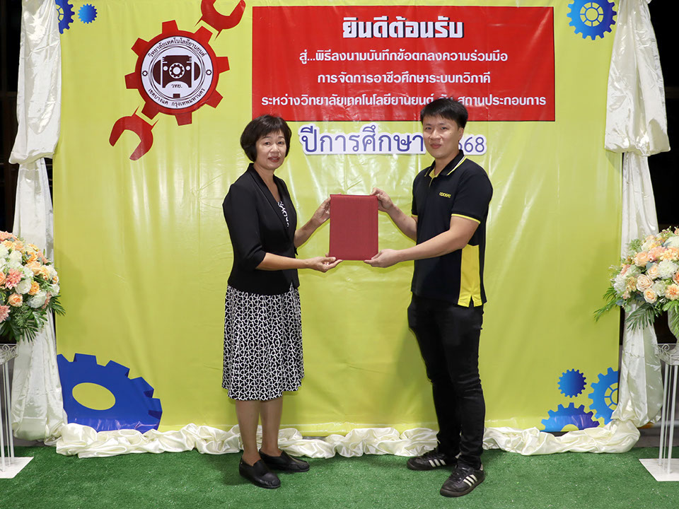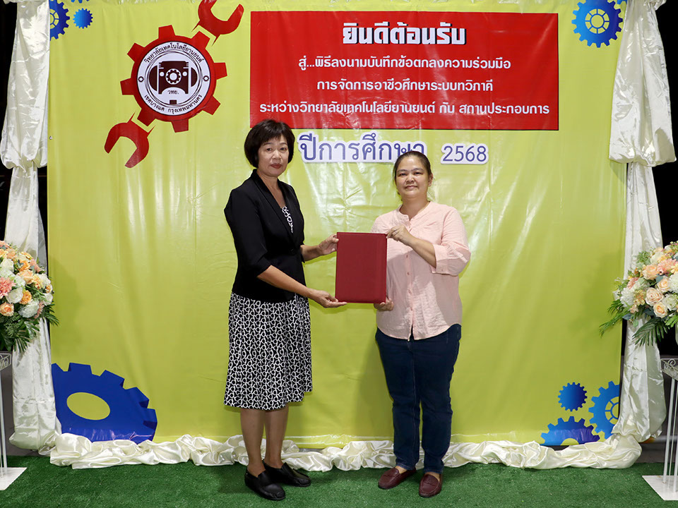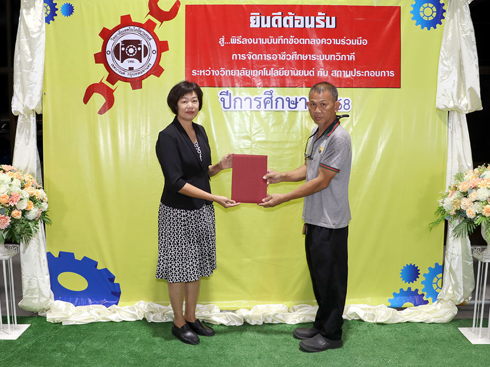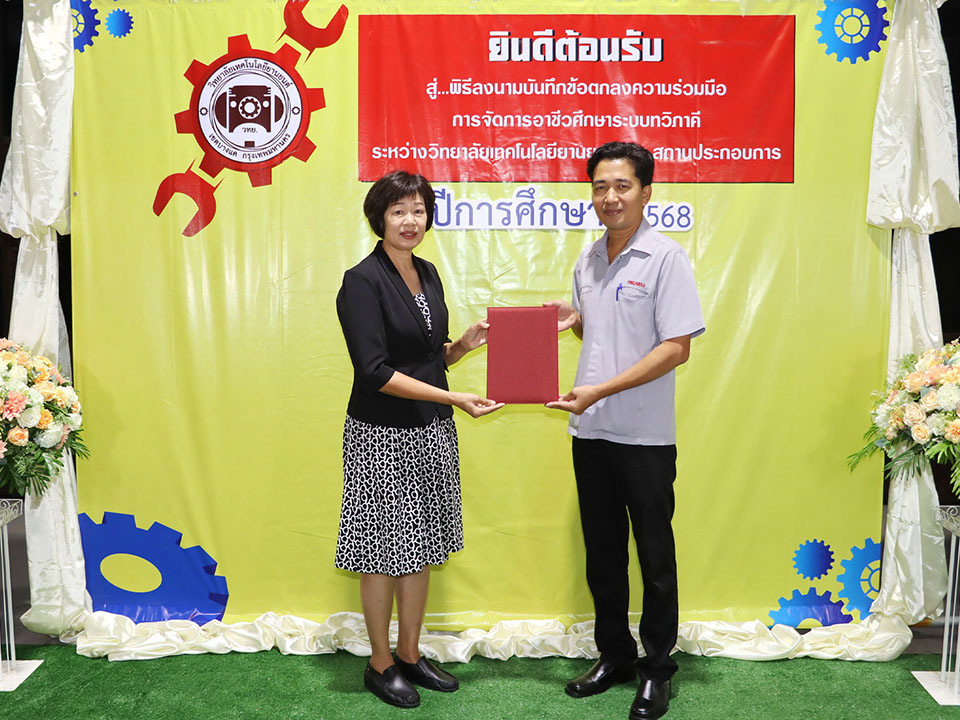 ผู้บริหาร / ตัวแทน / ผู้จัดการ สถานประกอบการ ผู้อำนวย ดร.โรจนะ ภิรมย์ ลงนามบันทึกข้อตกลงความร่วมมือการจัดการอาชีวศึกษาระบบทวิภาคี เมื่อวันที่ 6 ธันวาคม 2567