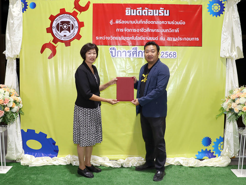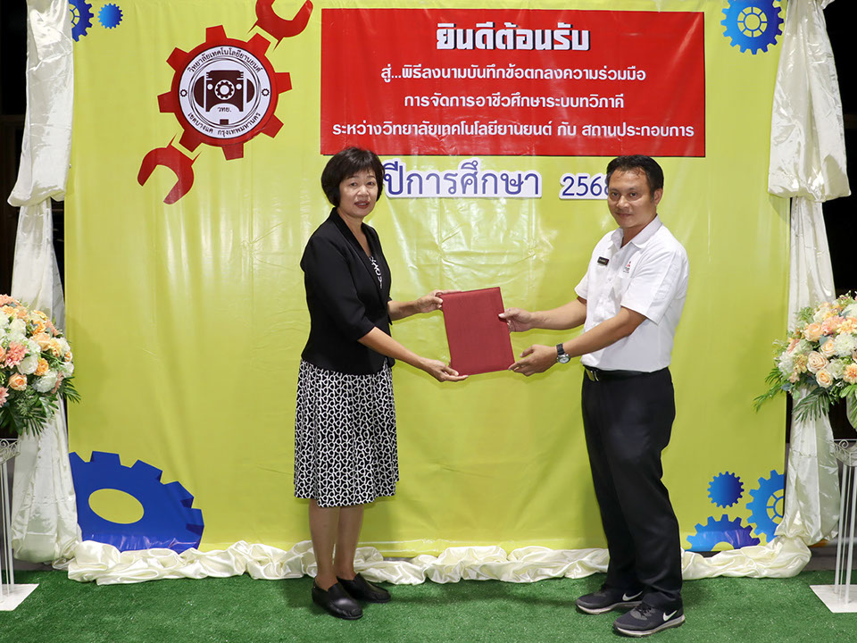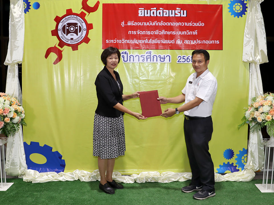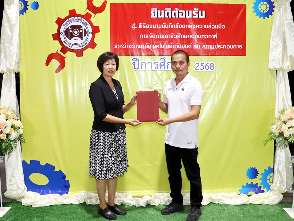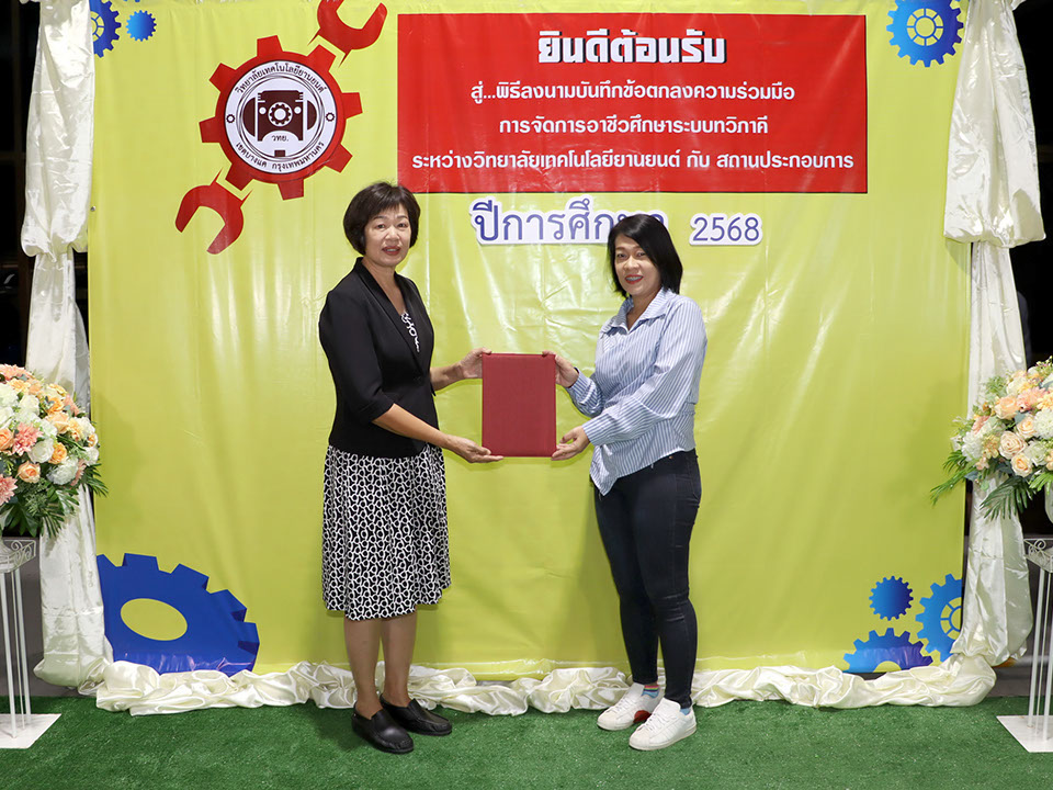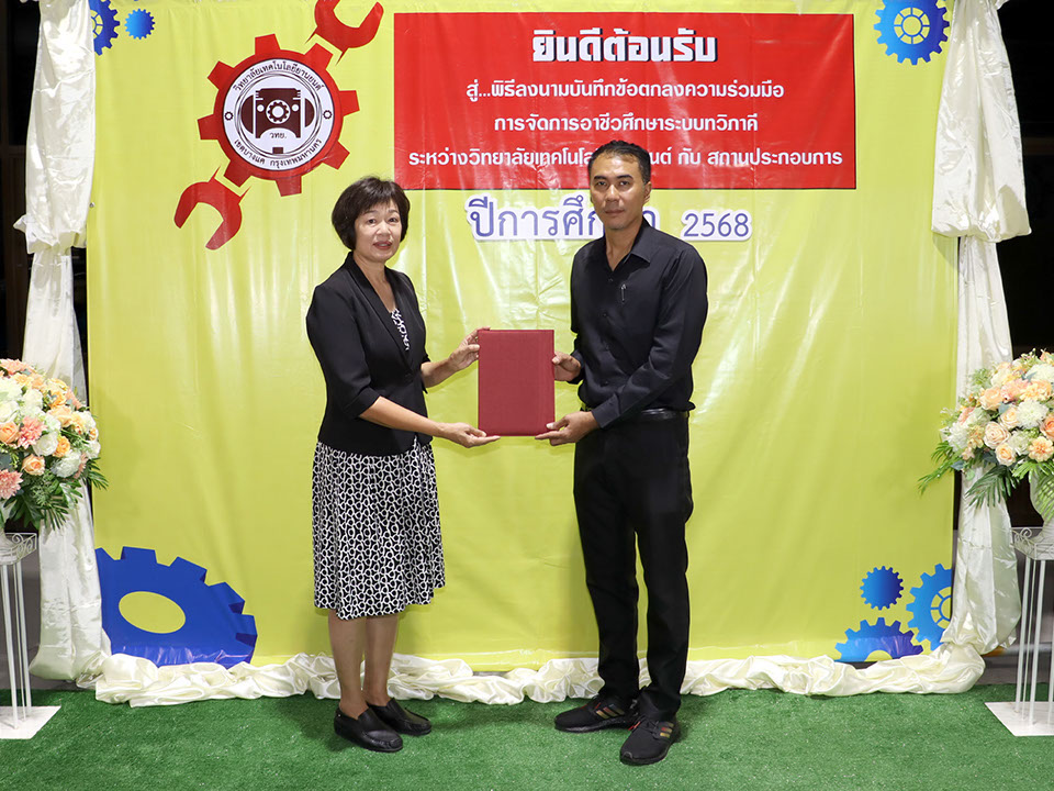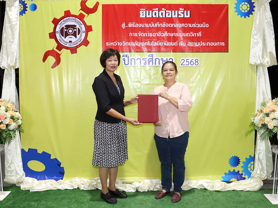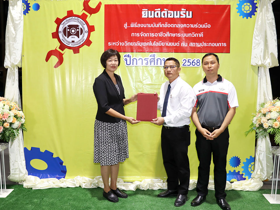 ผู้บริหาร / ตัวแทน / ผู้จัดการ สถานประกอบการ ผู้อำนวย ดร.โรจนะ ภิรมย์ ลงนามบันทึกข้อตกลงความร่วมมือการจัดการอาชีวศึกษาระบบทวิภาคี เมื่อวันที่ 6 ธันวาคม 2567