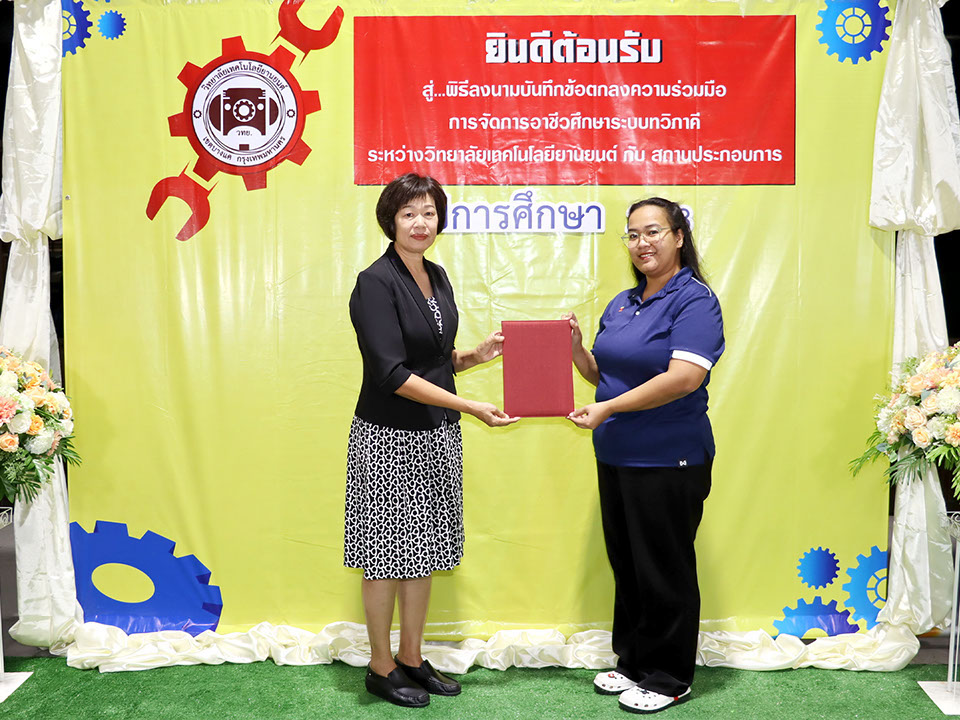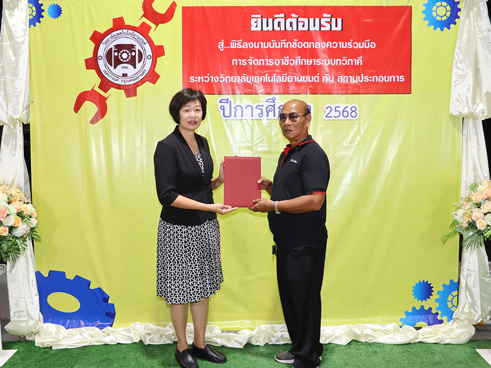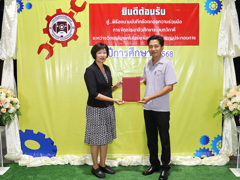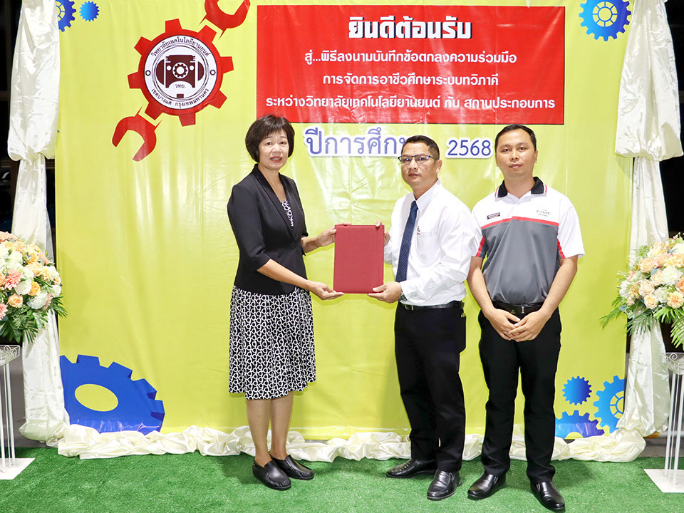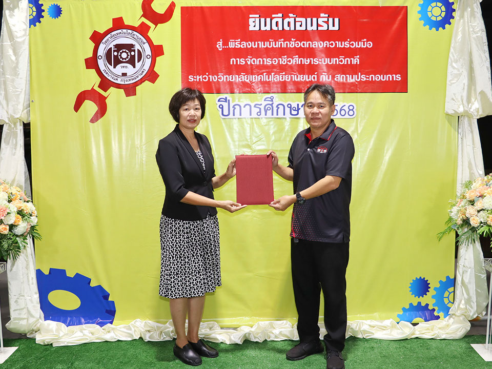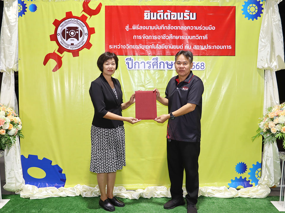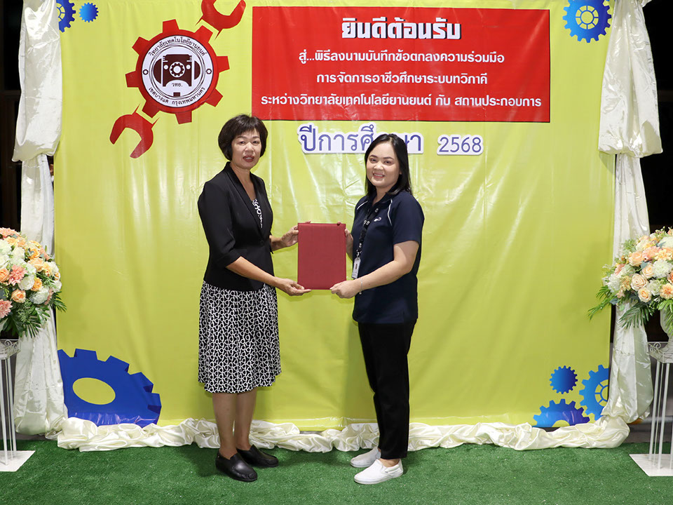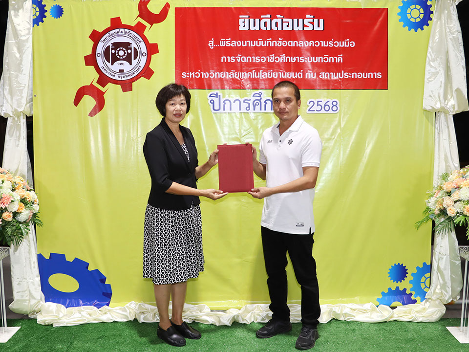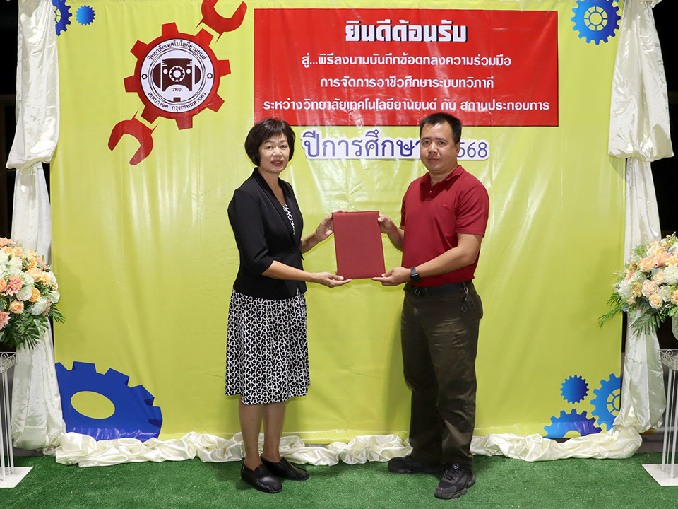 ผู้บริหาร / ตัวแทน / ผู้จัดการ สถานประกอบการ ผู้อำนวย ดร.โรจนะ ภิรมย์ ลงนามบันทึกข้อตกลงความร่วมมือการจัดการอาชีวศึกษาระบบทวิภาคี เมื่อวันที่ 6 ธันวาคม 2567