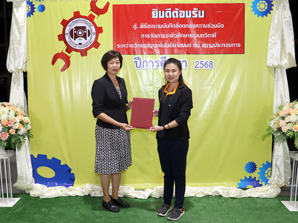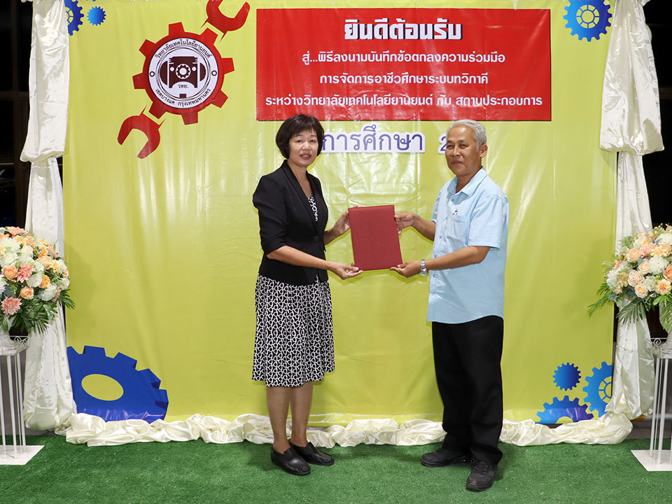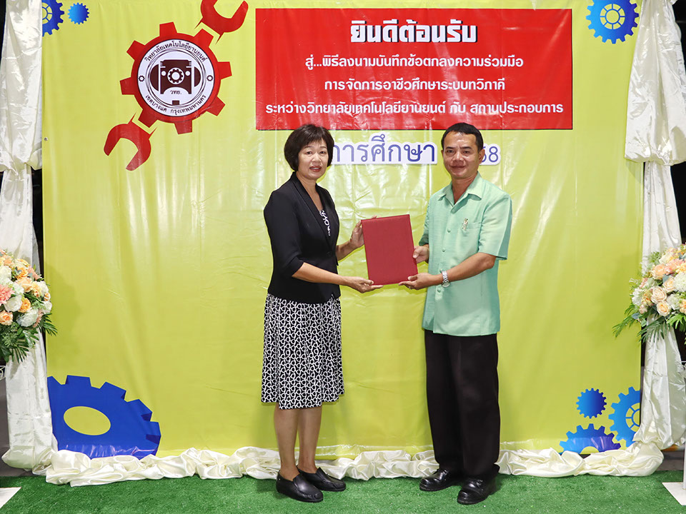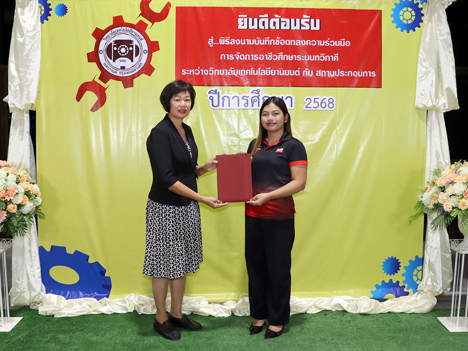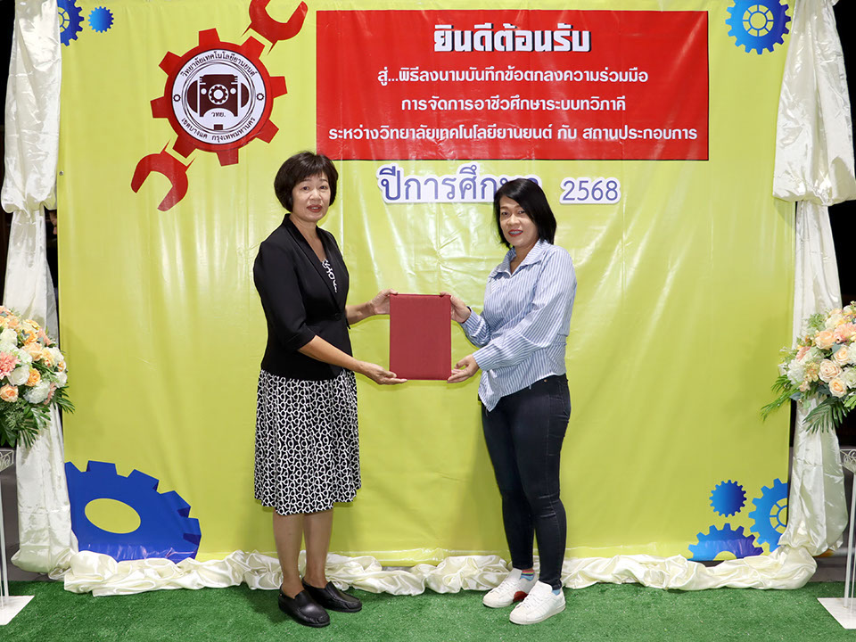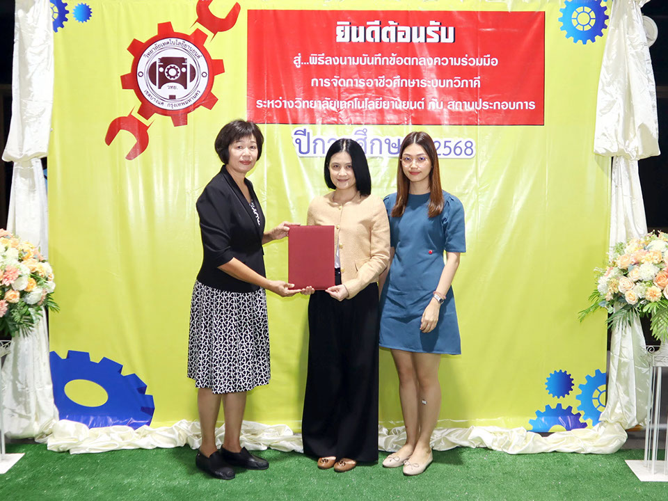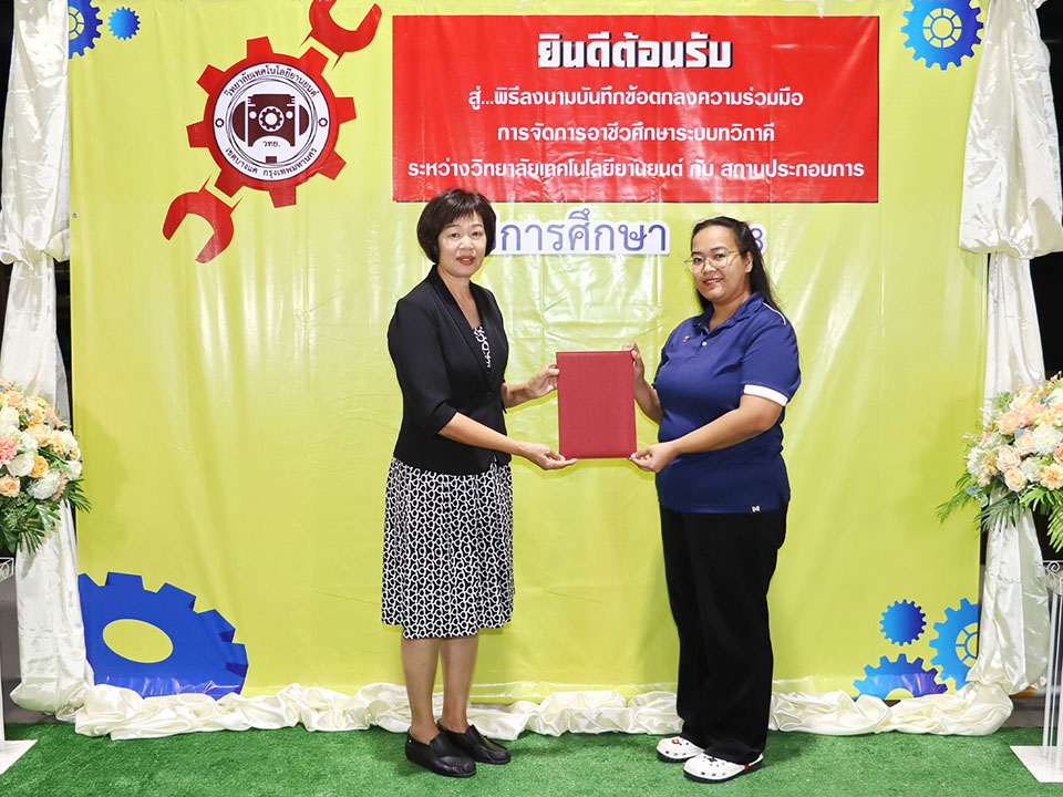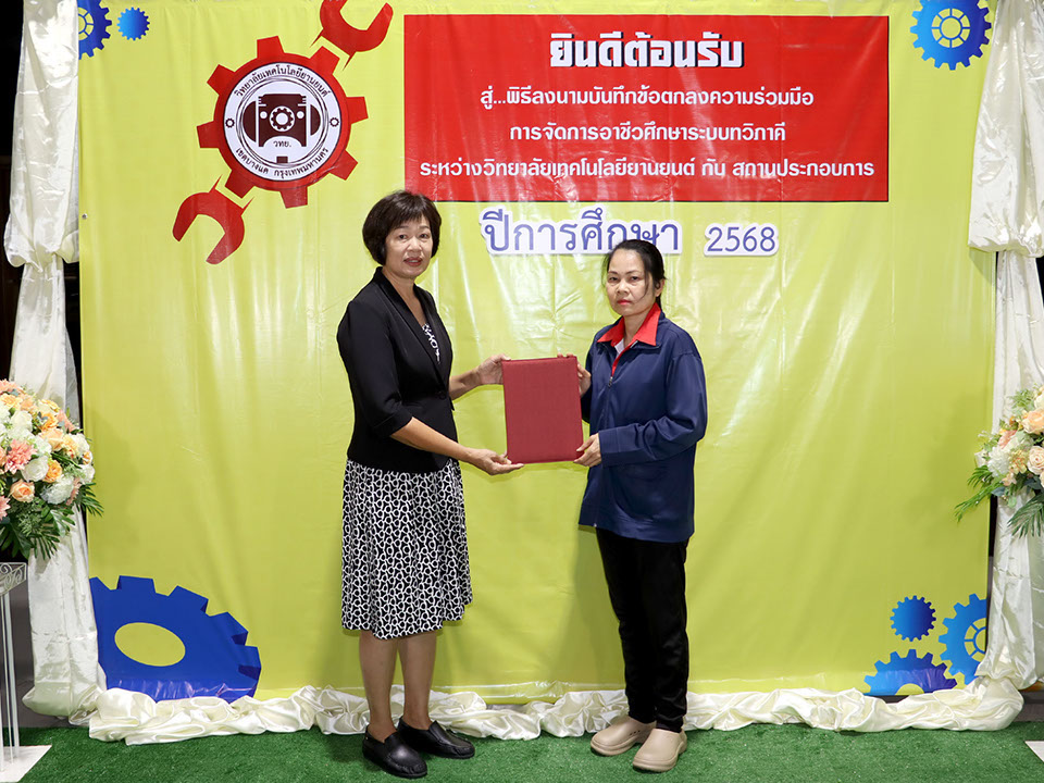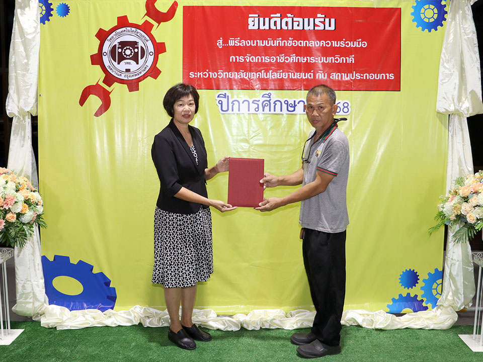 ผู้บริหาร / ตัวแทน / ผู้จัดการ สถานประกอบการ ผู้อำนวย ดร.โรจนะ ภิรมย์ ลงนามบันทึกข้อตกลงความร่วมมือการจัดการอาชีวศึกษาระบบทวิภาคี เมื่อวันที่ 6 ธันวาคม 2567