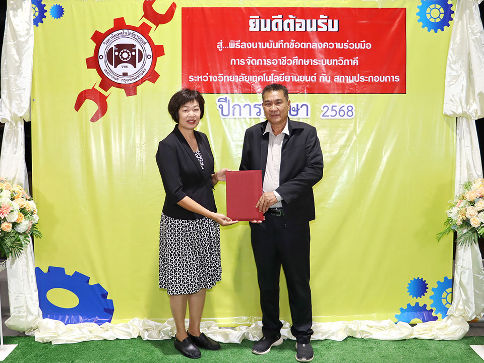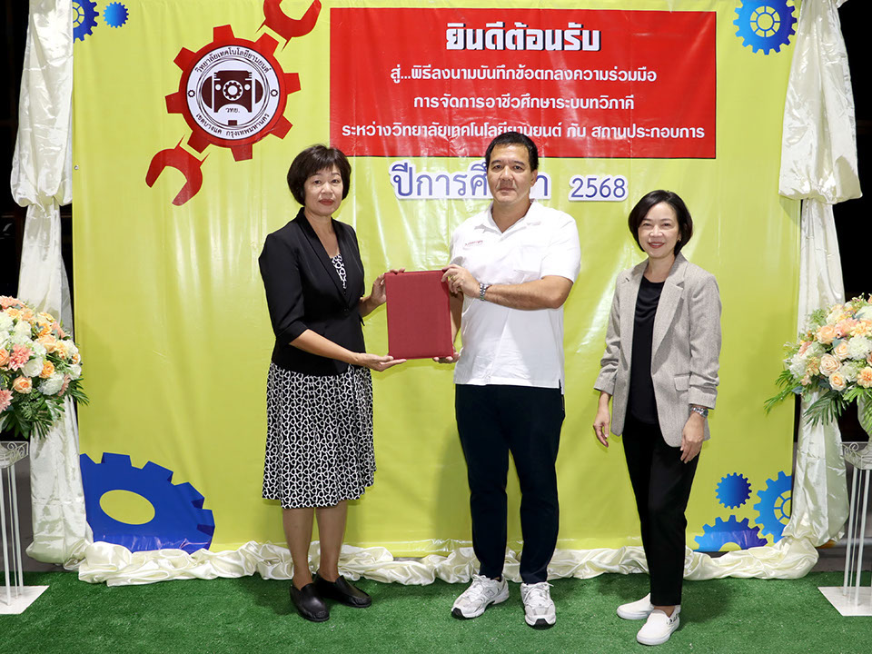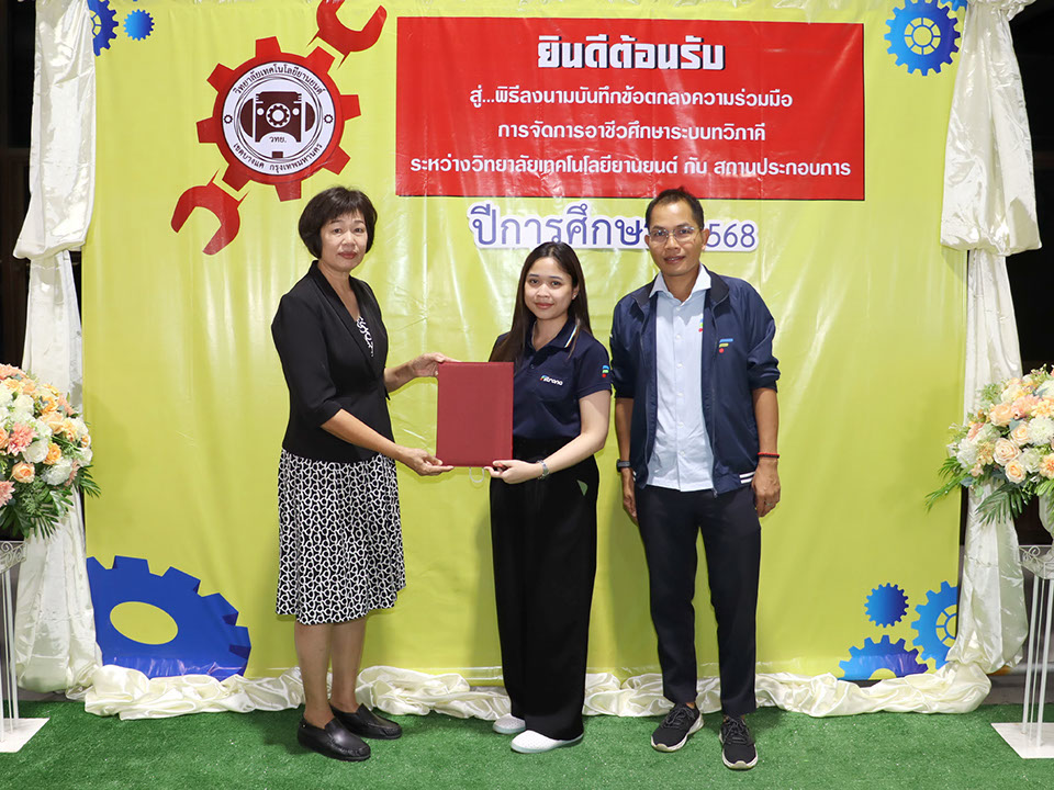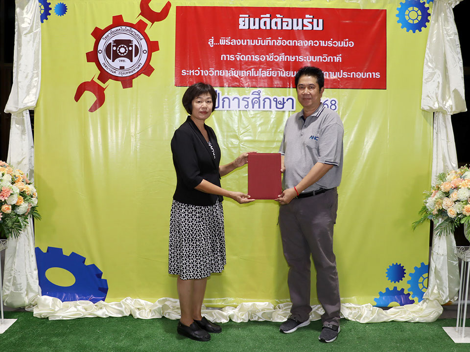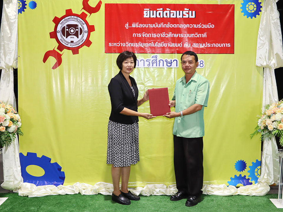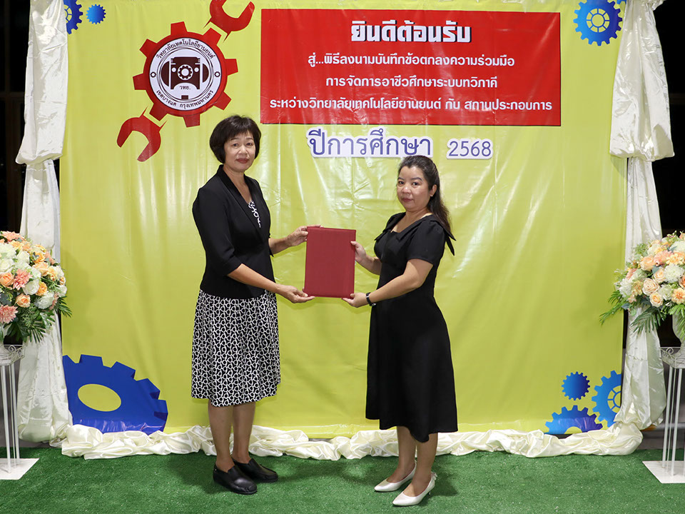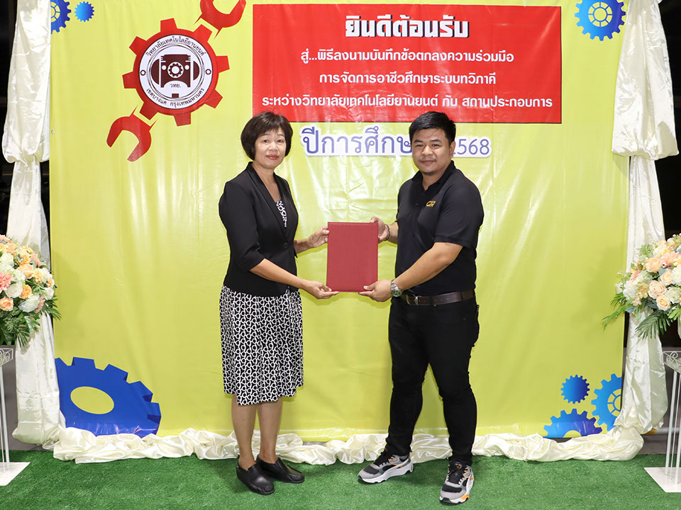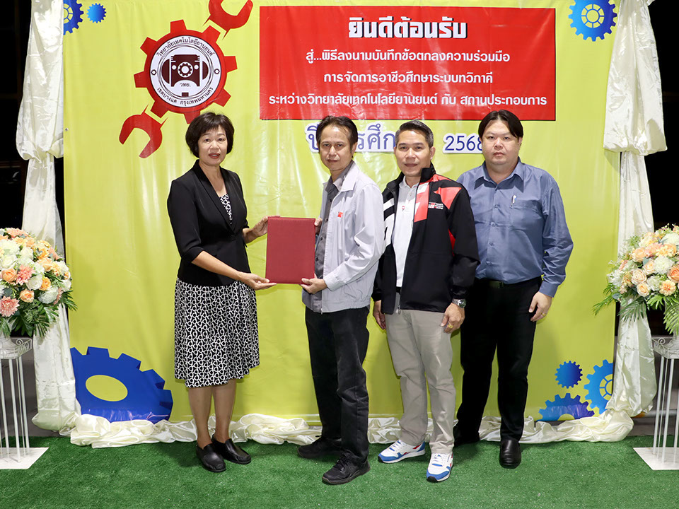 ผู้บริหาร / ตัวแทน / ผู้จัดการ สถานประกอบการ ผู้อำนวย ดร.โรจนะ ภิรมย์ ลงนามบันทึกข้อตกลงความร่วมมือการจัดการอาชีวศึกษาระบบทวิภาคี เมื่อวันที่ 6 ธันวาคม 2567