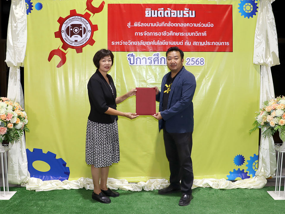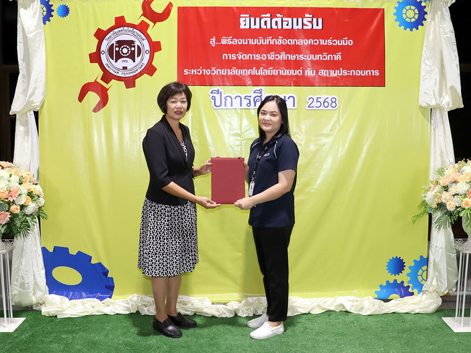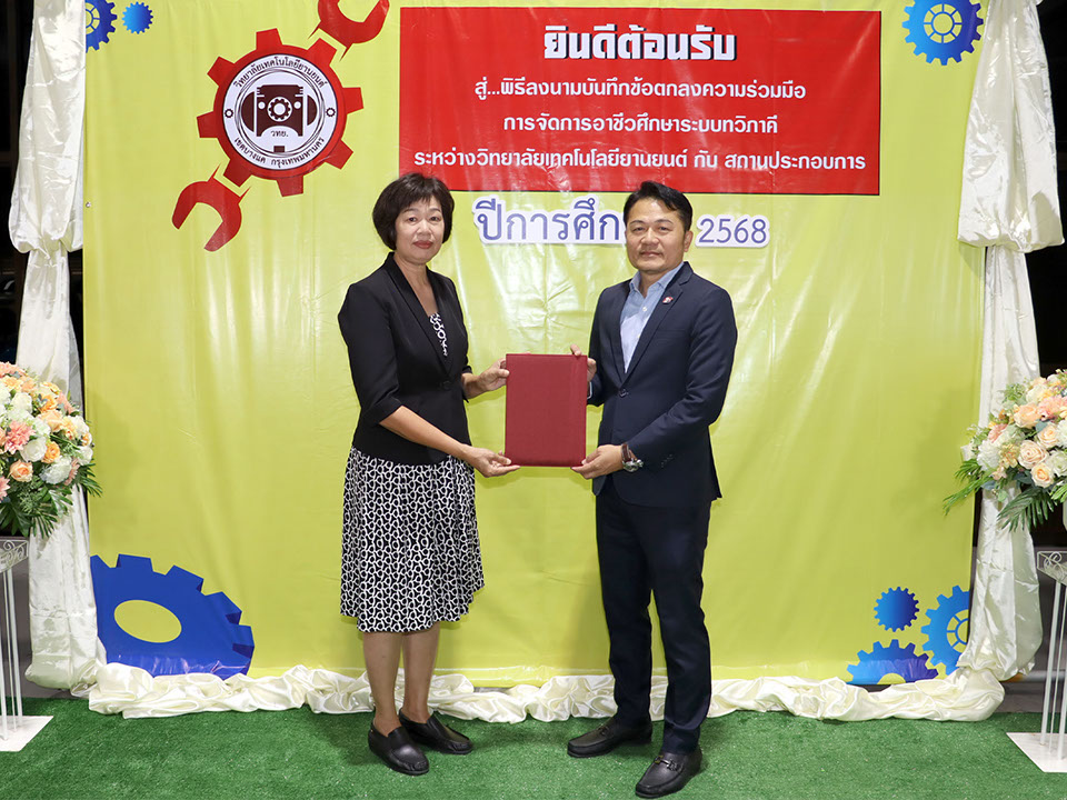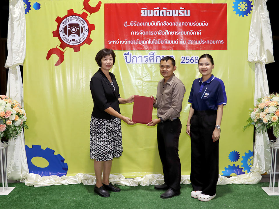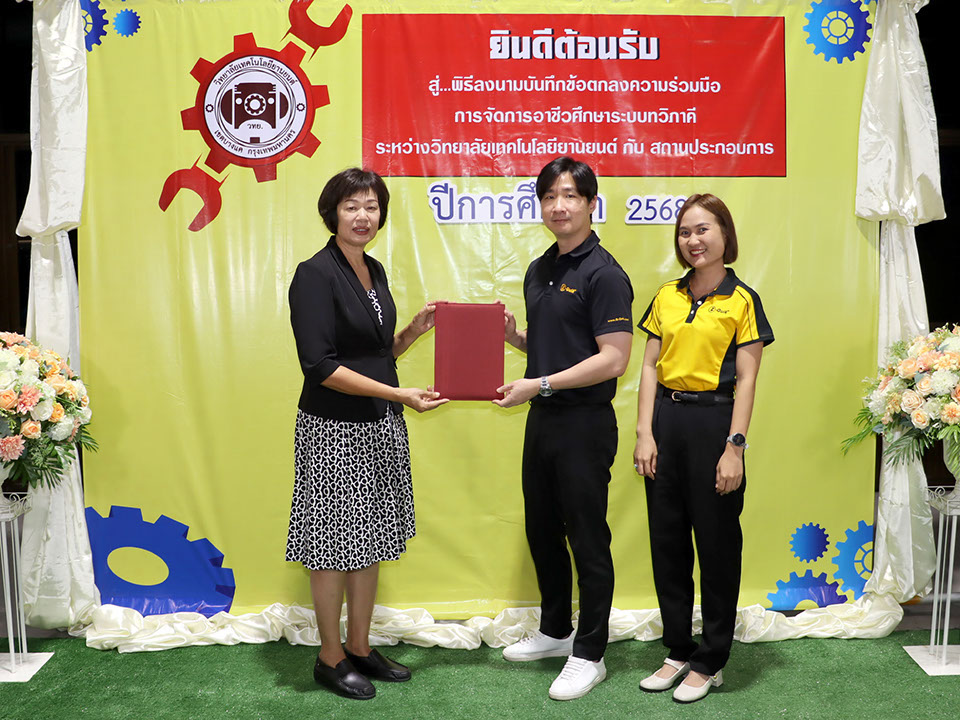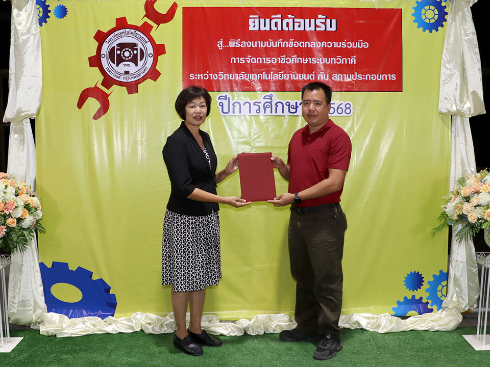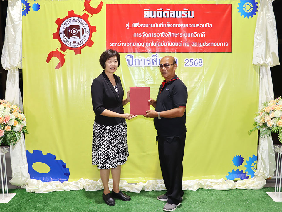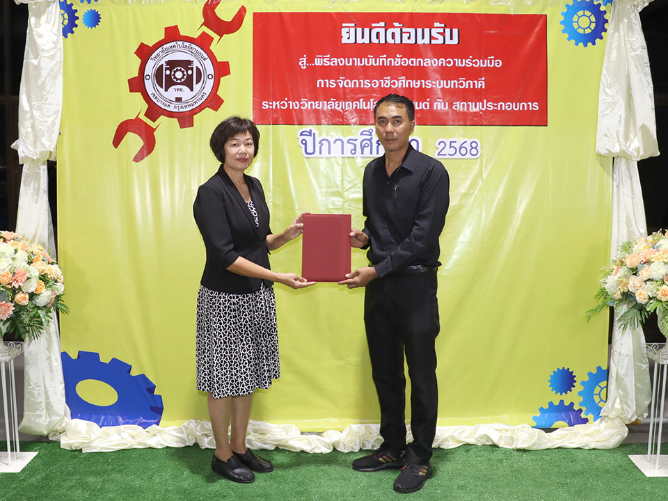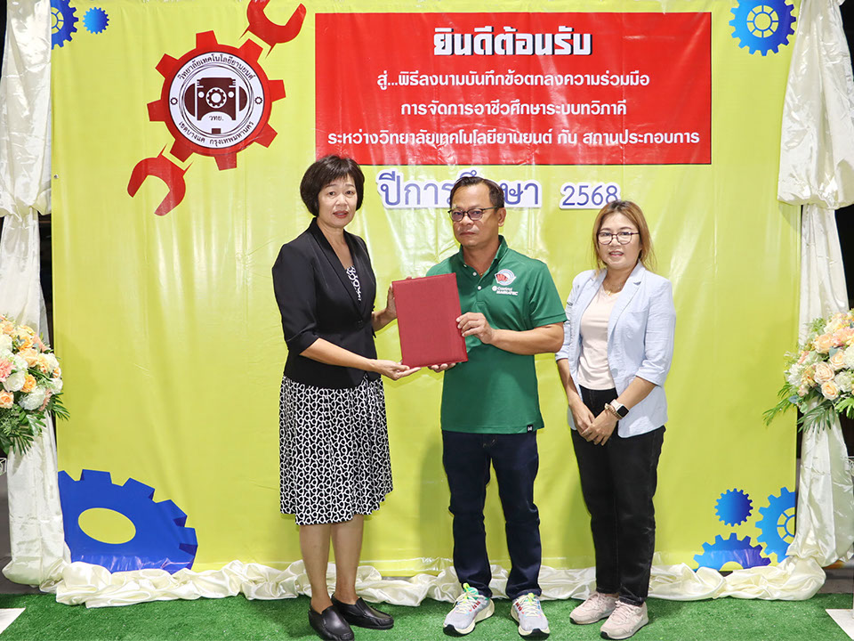 ผู้บริหาร / ตัวแทน / ผู้จัดการ สถานประกอบการ ผู้อำนวย ดร.โรจนะ ภิรมย์ ลงนามบันทึกข้อตกลงความร่วมมือการจัดการอาชีวศึกษาระบบทวิภาคี เมื่อวันที่ 6 ธันวาคม 2567