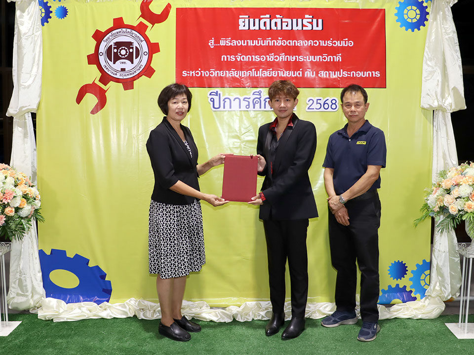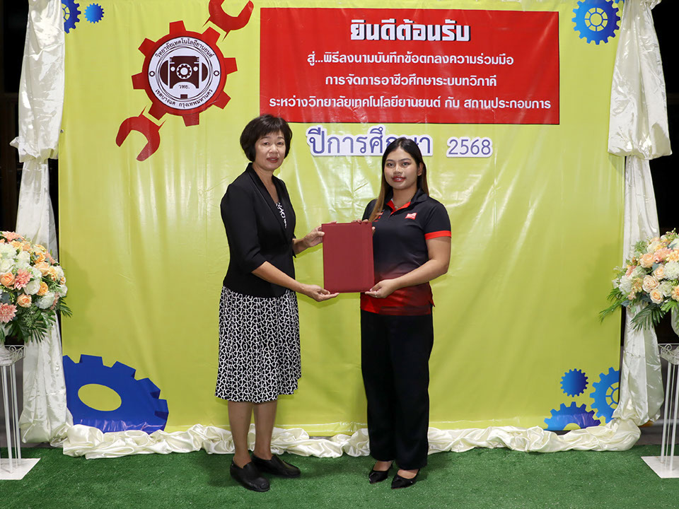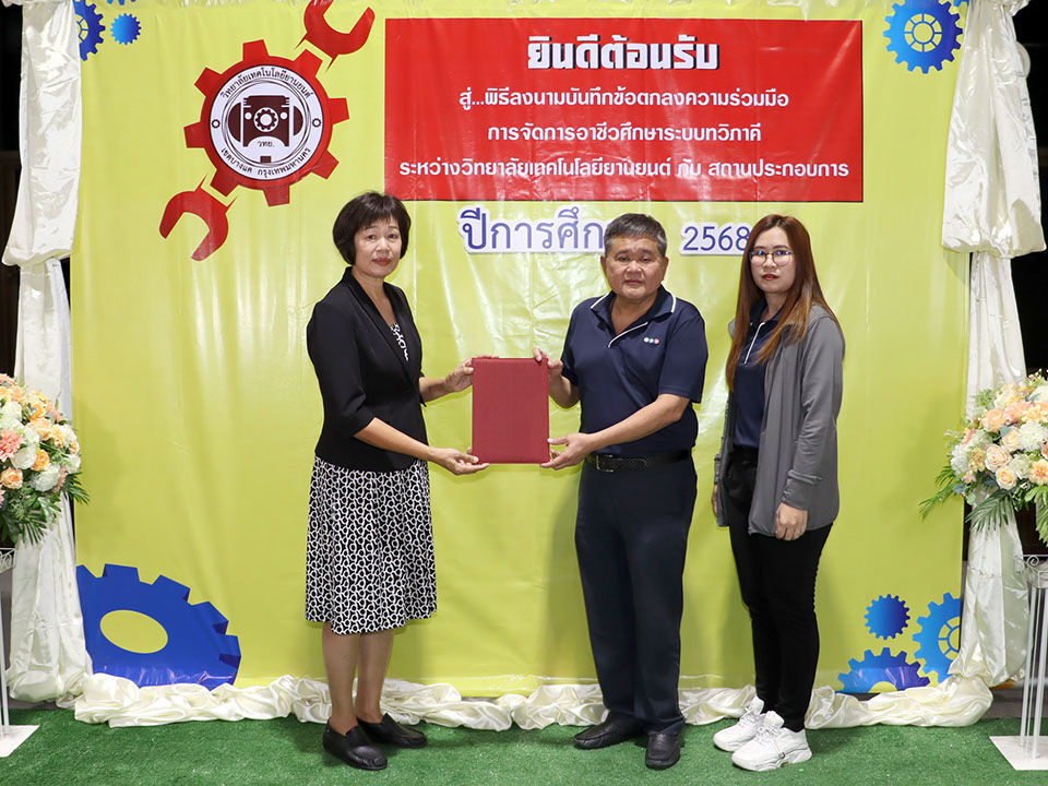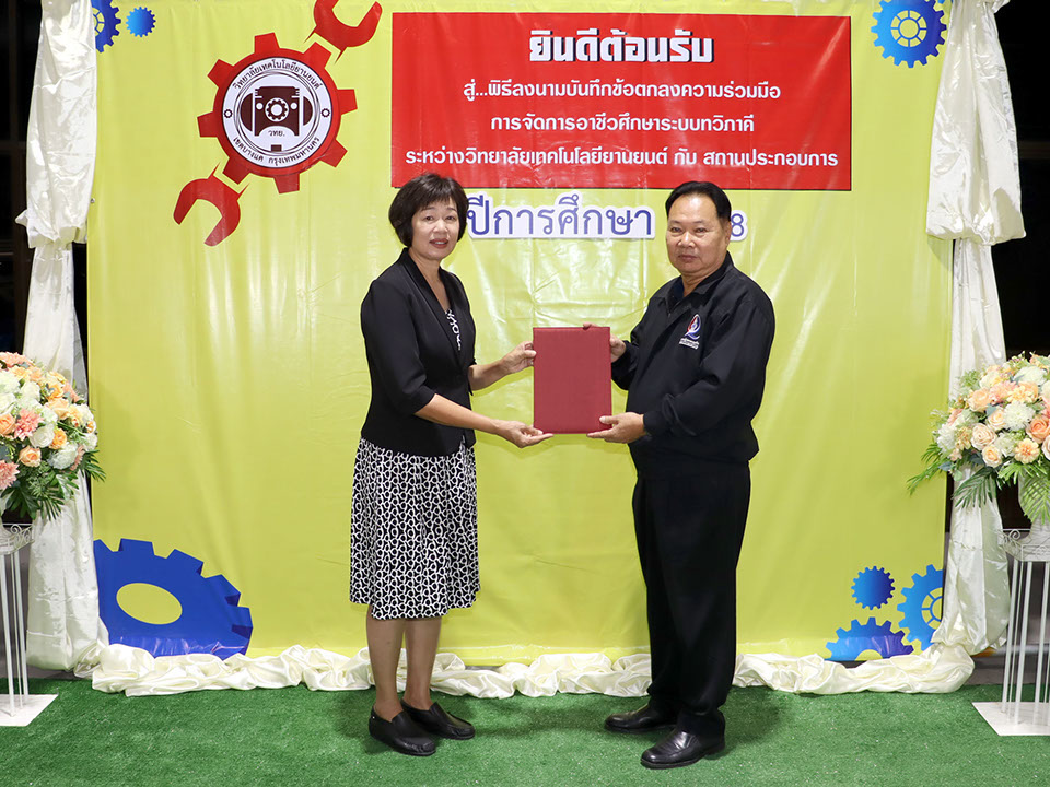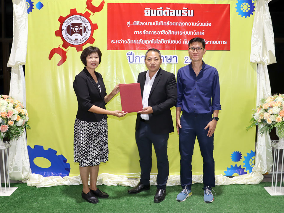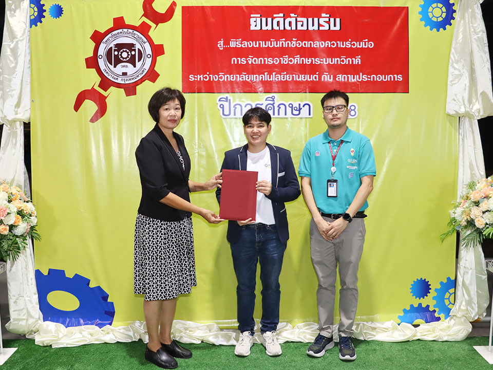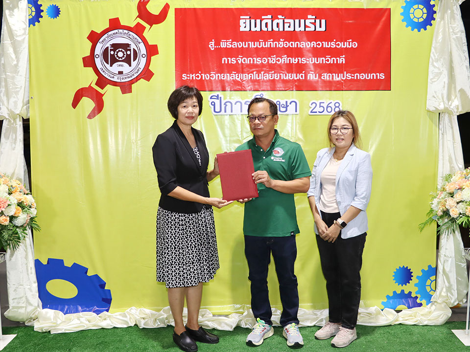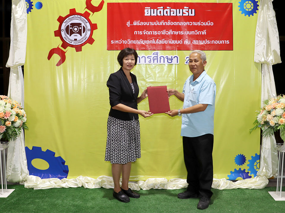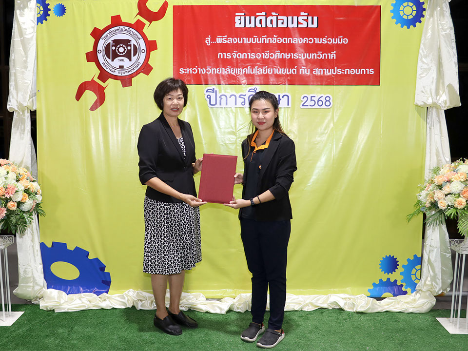 ผู้บริหาร / ตัวแทน / ผู้จัดการ สถานประกอบการ ผู้อำนวย ดร.โรจนะ ภิรมย์ ลงนามบันทึกข้อตกลงความร่วมมือการจัดการอาชีวศึกษาระบบทวิภาคี เมื่อวันที่ 6 ธันวาคม 2567