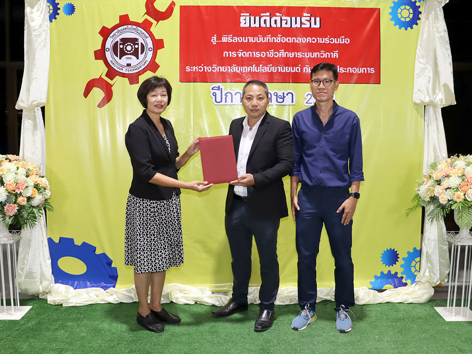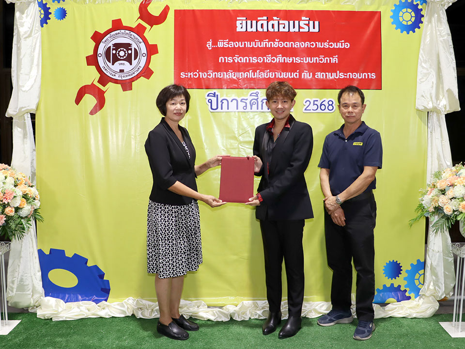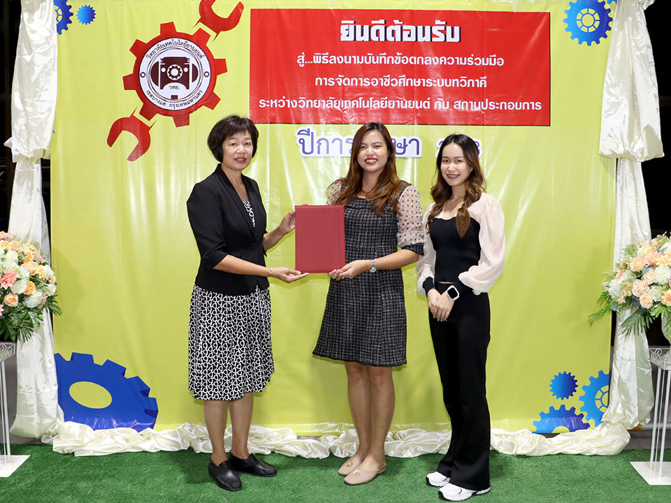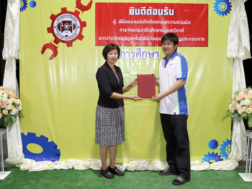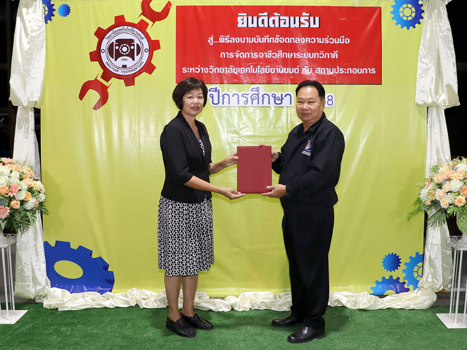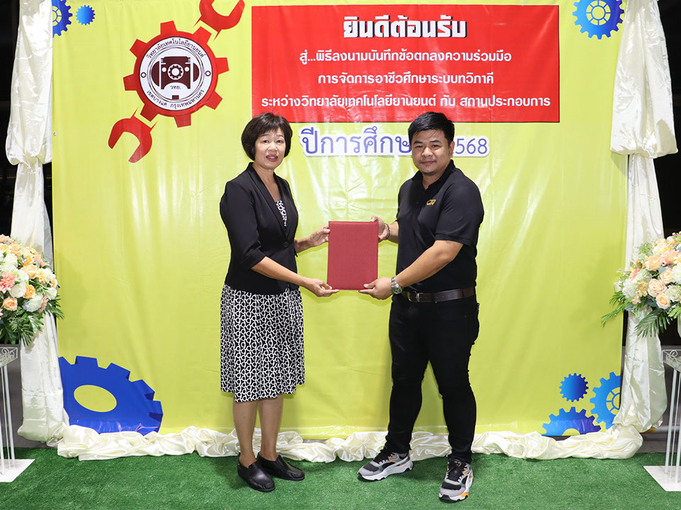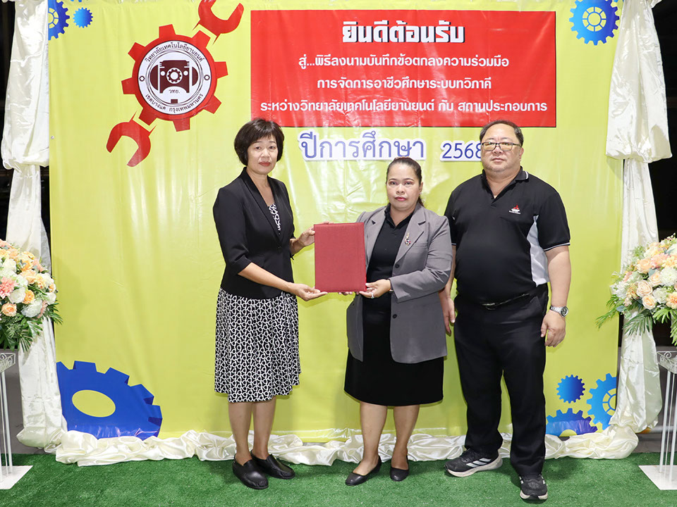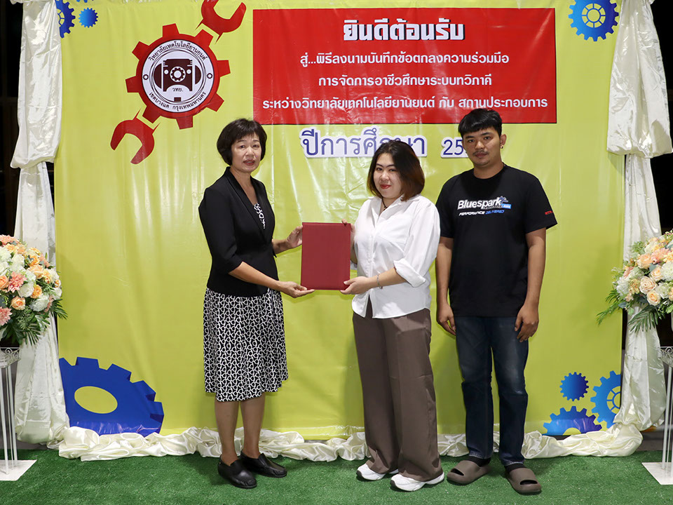 ผู้บริหาร / ตัวแทน / ผู้จัดการ สถานประกอบการ ผู้อำนวย ดร.โรจนะ ภิรมย์ ลงนามบันทึกข้อตกลงความร่วมมือการจัดการอาชีวศึกษาระบบทวิภาคี เมื่อวันที่ 6 ธันวาคม 2567