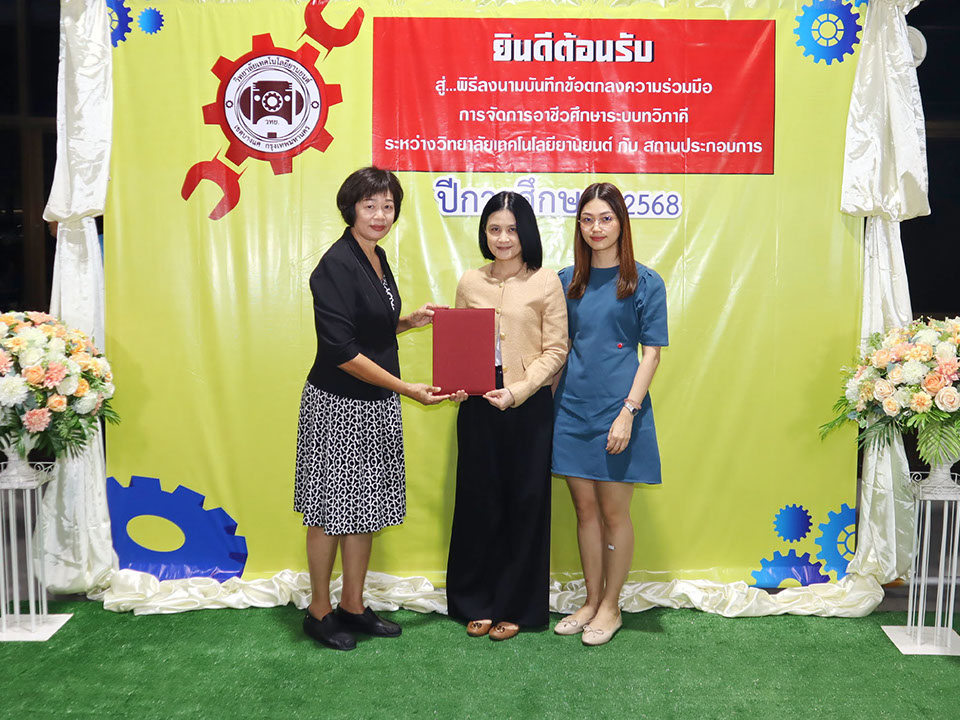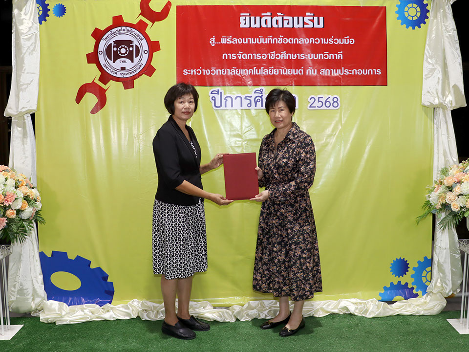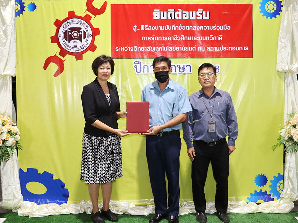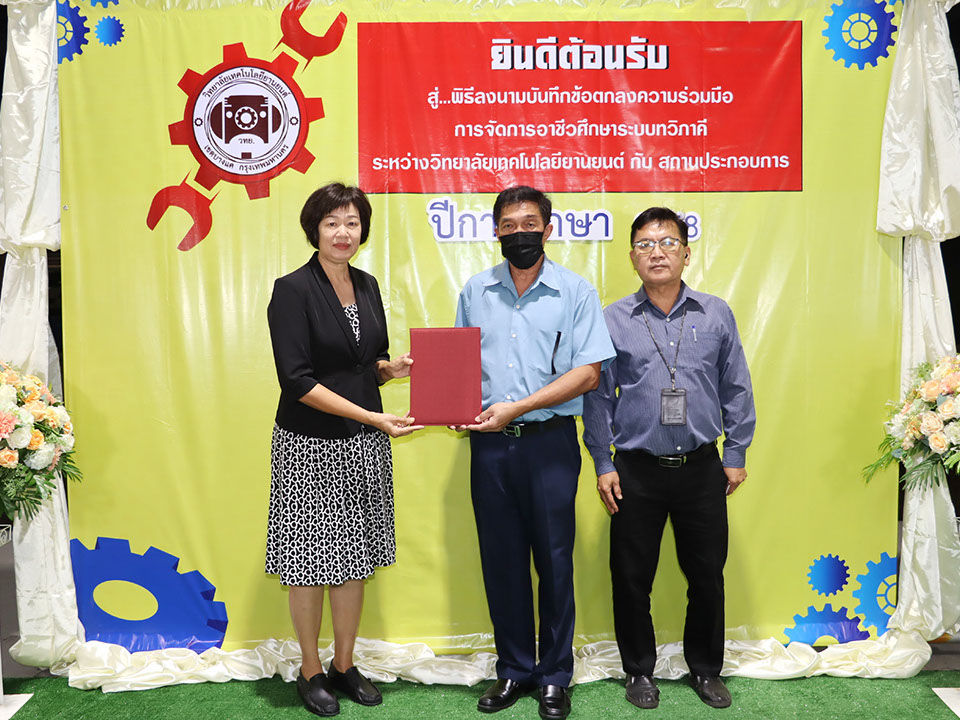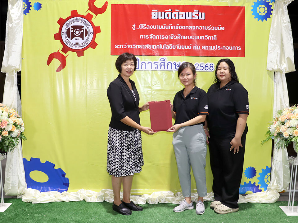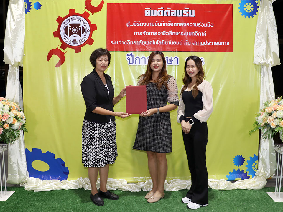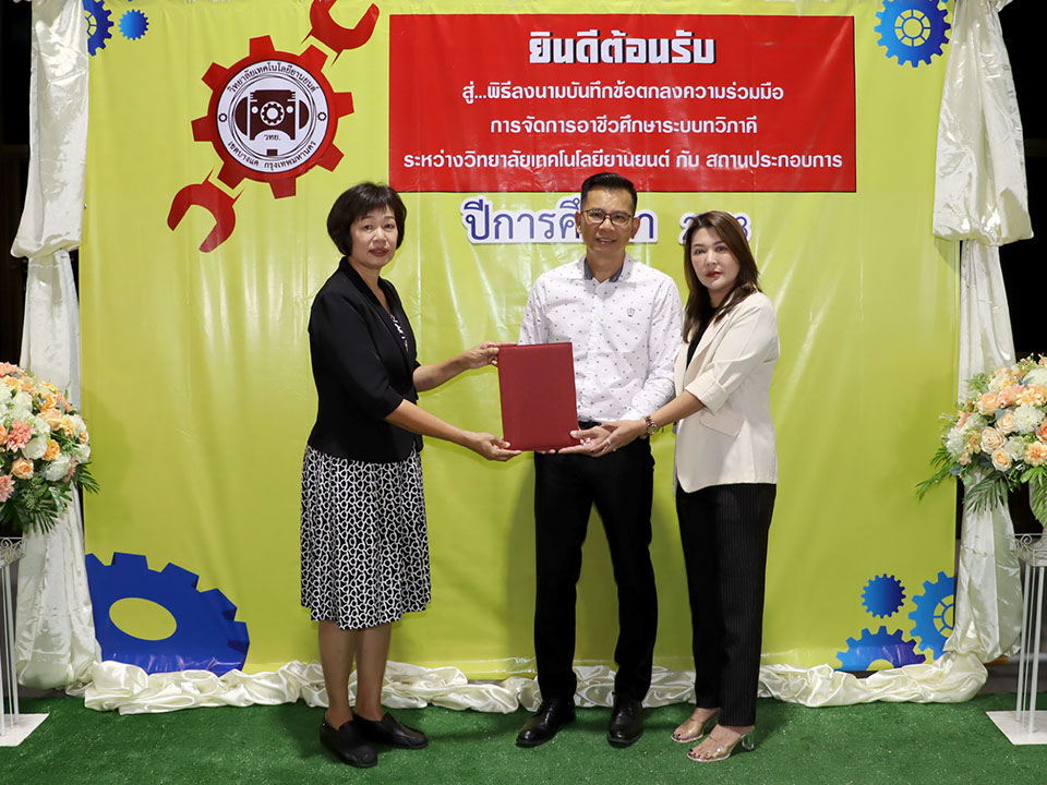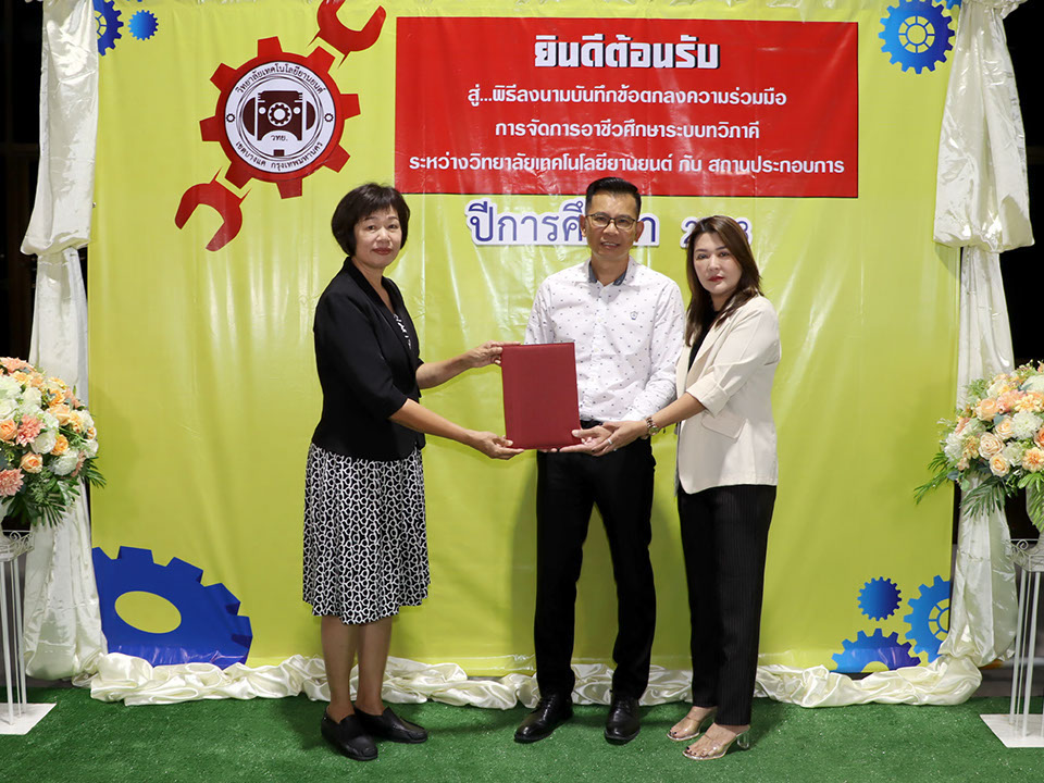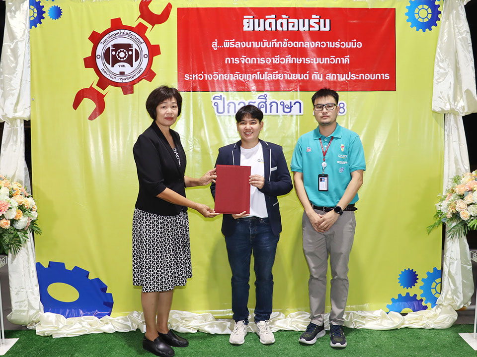 ผู้บริหาร / ตัวแทน / ผู้จัดการ สถานประกอบการ ผู้อำนวย ดร.โรจนะ ภิรมย์ ลงนามบันทึกข้อตกลงความร่วมมือการจัดการอาชีวศึกษาระบบทวิภาคี เมื่อวันที่ 6 ธันวาคม 2567